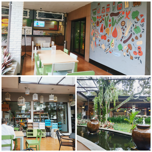 Kafe Krang Kring tidak ada bedanya dengan interior dan suasana cafe kebanyakan di Bandung. Sofa-sofa nyaman atau kursi dan meja tersedia cukup banyak di ruangan bagian depan. Ada satu ruangan yang diisi oleh toko fashion hijab. Sampai di sini ambience kafe terasa modern bergaya masa kini, hingga kita membuka pintu di bagian belakang ruangan.