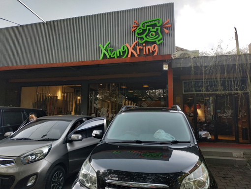 Tempat makan ini mudah dikenali ya, karena nama dan logo Krang Kringnya cukup menyolok terdisplay di bagian atas bangunan. Area parkirnya lumayan saja, meski kalau lagi ramai jelas space-nya ga akan berimbang dengan kapasitas customer totalnya. Untungnya, lagi-lagi, kami datang di hari kerja, jadi parkir jelas tak masalah.