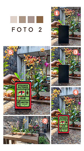 Saya letakkan tab berdiri lurus. Saya pastikan bunga-bunga anggrek yang cantik tampak jelas sebagai latarnya, dan bagian sisi batu membentuk pola diagonal. Hasil foto bisa dillihat pada gambar 1.Â