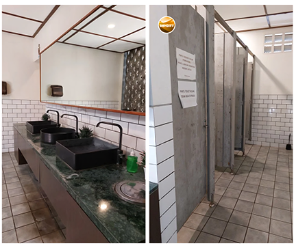 Ruang Mushola di Haben Kedai Kopi ada di sebelah kiri area smoking. Letaknya di sudut kanan toilet dan wastafel cuci tangan. Area tidak begitu besar, muat sekitar 5 atau 6 orang saja. Cukup bersih, dan yang penting memang ada fasilitasnya sehingga bisa shalat saat waktu sudah tiba.