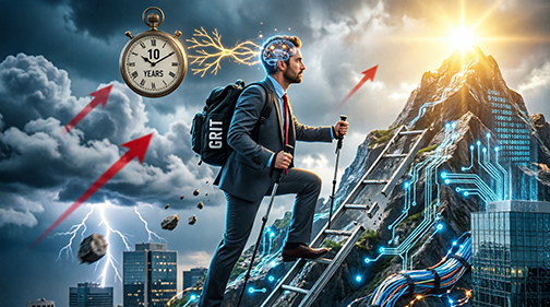 Kesuksesan jangka panjang tidak hanya ditentukan oleh IQ atau bakat, tetapi oleh Grit—kombinasi dari gairah dan kegigihan untuk tujuan jangka panjang. Riset oleh Angela Duckworth menunjukkan bahwa individu yang memiliki Grit tinggi sering kali melampaui mereka yang memiliki talenta lebih besar namun kurang tekun.