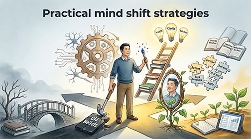 Untuk mengubah pola pikir, tidak cukup hanya dengan membaca; diperlukan latihan yang konsisten. Berikut adalah langkah-langkah praktis untuk melakukan pergeseran mental: