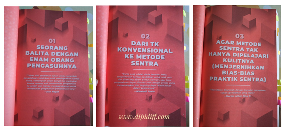 Buku ini mencoba memberikan penjelasan mengenai teori, konsep, dan  perkembangan Metode Sentra.  Sebuah buku yang dapat memperkaya khazanah dunia pendidikan, sekaligus sebagai acuan untuk memperbaiki kualitas pendidikan di negeri ini.