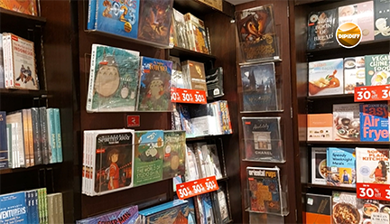 Menyisir ke sebelah kanan toko, dulu dipajang beragam buku non fiksi, namun sejak beberapa bulan lalu area ini diganti dengan koleksi buku anak, middle grade, dan Young Adult. Selain itu ada variasi buku manga, dan buku-buku Tuttle. Masuk ke lebih jauh lagi ada mesin ekiosk untuk memesan buku di web dan kebutuhan cek info serta transaksi online lainnya.