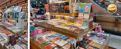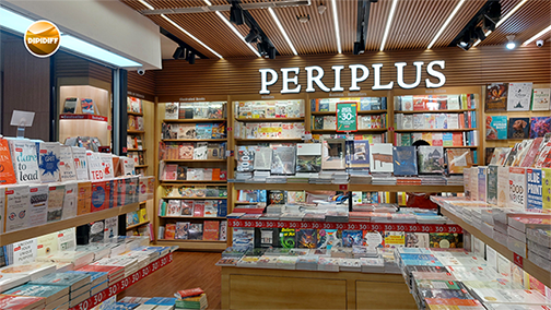 Periplus bookstore ada di lantai dua gedung Uniqlo. Untuk mencapai lokasi Periplus, kita masuk ke dalam store Uniqlo, lalu menuju lift di ujung ruangan dan naik ke lantai dua, dan begitu membuka pintu lift, store Periplus langsung terlihat di depan mata.